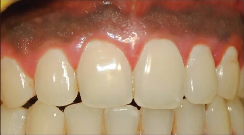 نیکوتین موجود در سیگار و ترکیبات رنگ‌زا در قهوه یا چای تیره، جریان خون لثه را کاهش می‌دهد و باعث تیرگی ماندگار رنگ لثه می‌شود.